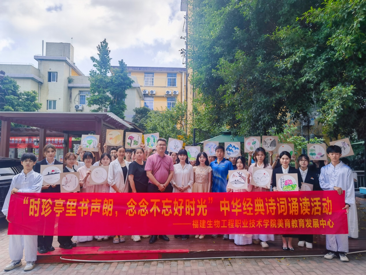 为庆祝中华人民共和国成立75周年,激发爱国情怀,传承革命精神,弘扬中华优秀传统文化,提升我校师生人文素养,10月15日下午,学校美育教育发展中心在洪山校区举办“时珍亭里书声朗,念念不忘好时光”中华经典诗词诵读活动。