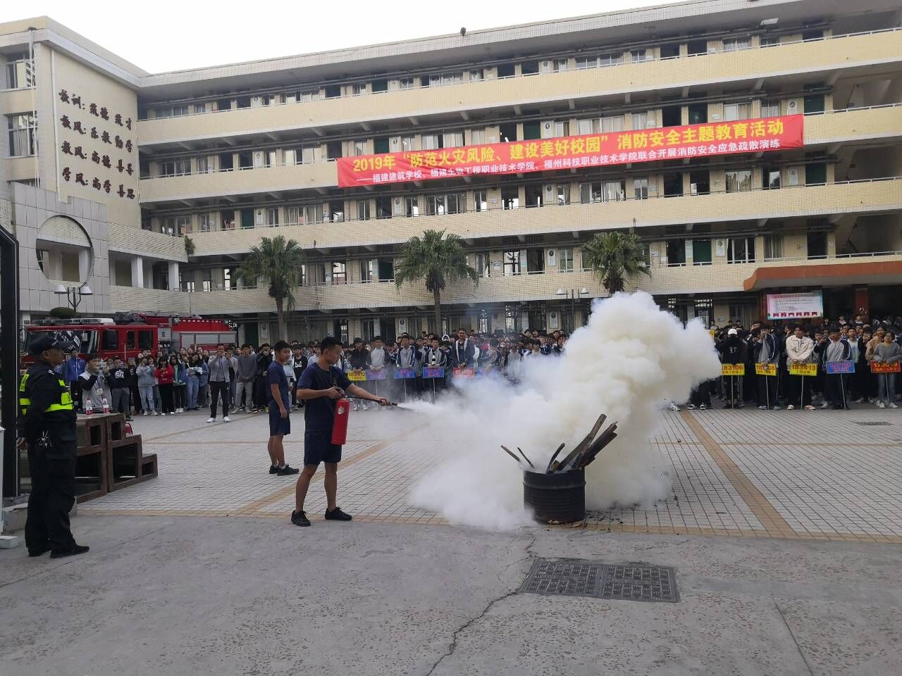 2019年11月我校联合福建建筑学校、福州科技职业技术学院等周边院校集中开展了“防范火灾风险建设美好校园”安全消防月系列主题教育活动。