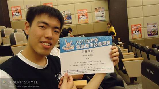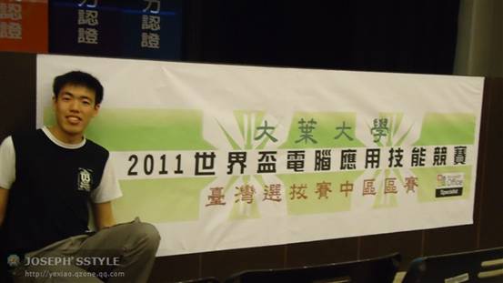 5月7日,在台湾彰化县大叶大学举办了 “2011世界杯计算机应用技能竞赛”中区大赛,共有台湾中部五县市二十七所大专和高中职、国中学校的近400人选手参赛。我院保健营养学系赴台学习的叶骁同学荣获“2011世界杯电脑应用技能竞赛”台湾中区选拔赛大专院校组MOS 2003 word 竞赛第七名,晋级台湾地区总决赛。