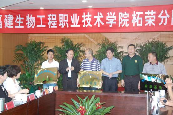 在随后举行的座谈会上,学院领导为福建广生堂药业有限公司、闽东力捷迅药业有限公司、福建天人药业有限公司等三家校外实训基地授牌。此举旨在深化校企合作,保证分院学生就近实训,推进教学活动与企业生产过程紧密结合,培养优秀技能型人才,助力“海西药城”发展。