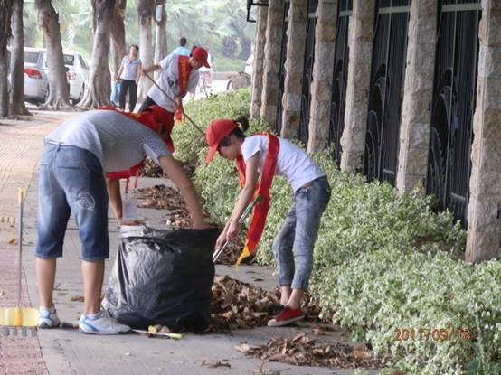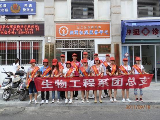 新学期伊始,为迎接福州创建全国文明城市,我院生物工程系团总支全体成员及部分2011级新生深入台江区苍霞街道同德社区开展为期两天的志愿者活动。
