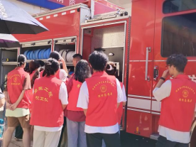 二是装备讲解和体验。在消防教官的讲解和协助下,我校消防队员穿上厚重的灭火防护服、空气呼吸器等专业装备让队员深刻体会到了消防员执行任务时的艰辛与责任。随后消防员带领大家近距离参观消防车辆,详细讲解不同车型的用途及随车装备。
