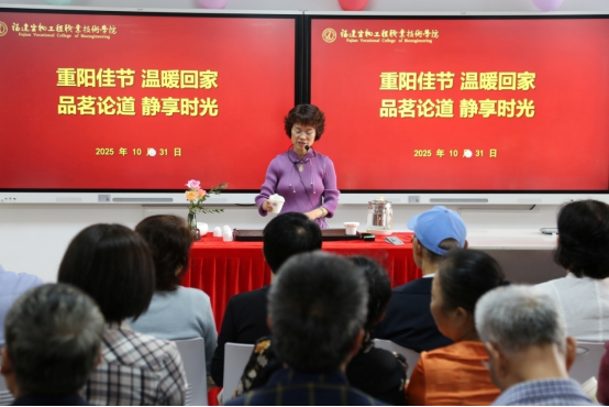 二号楼的教室内,老同志们齐聚一堂,聆听了一场意境深远的茶道讲座。茶艺师从福建茶入手,娓娓道来茶叶的历史与茶文化的流变。大家细酌慢品,静心体味茶香中蕴含的人生哲理,共度一段闲适雅致的安宁时光。