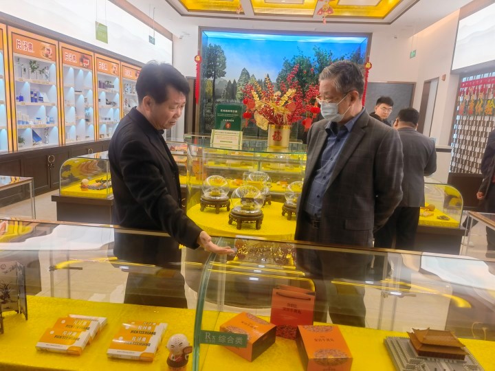 陈文渊总经理对公司基本情况进行了全面的介绍,并陪同王琦院士与郑燕飞书记参观了片仔癀宏仁旗下健康管理公司“名医•名药•名馆”鸿山店,双方就该项目模式进行了深入的探讨与交流。