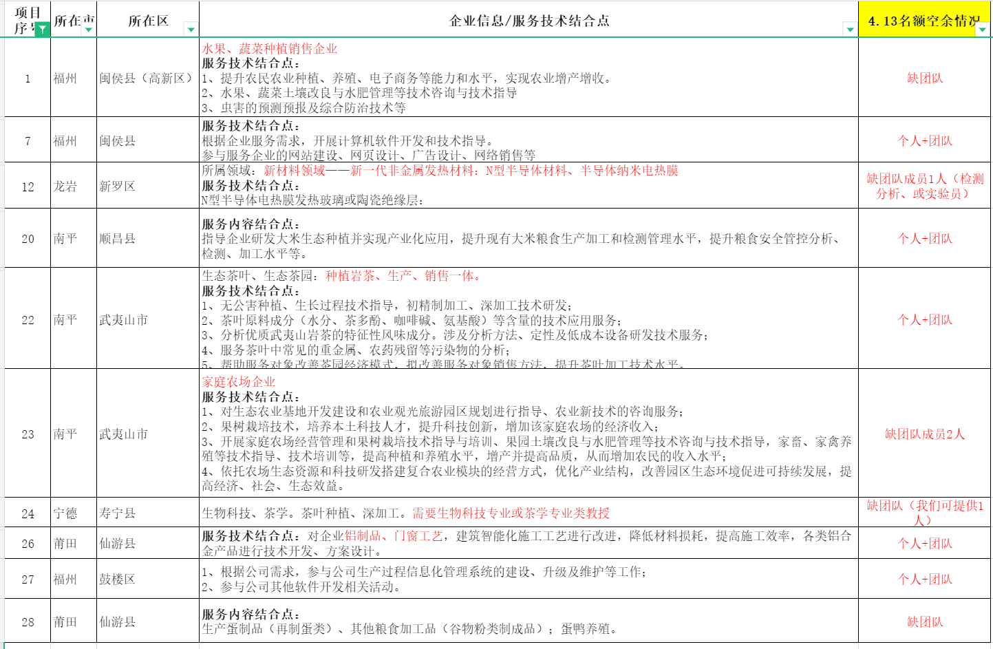 请各位老师、专业技术服务人员,根据以上企业信息/技术结合点,有意向接洽合作的老师请于4月15日前联系科技处0591-83852655,商谈具体合作事宜。