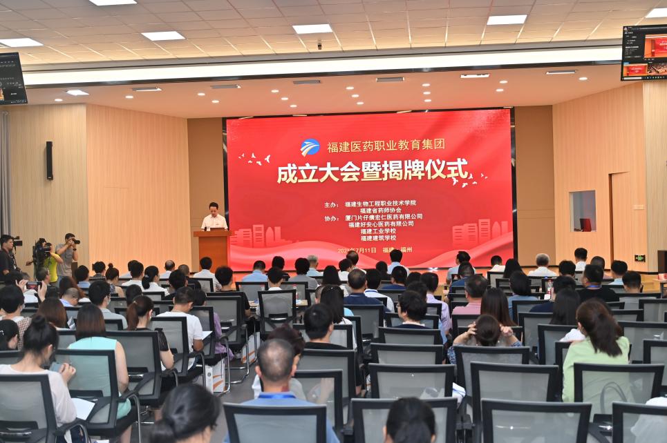 中国科学院院士谢联辉教授、福建省药师协会会长林碧芳分别致辞。随后,福建省教育厅副厅长刘健、8040威尼斯党委书记林志华教授共同为福建医药职业教育集团揭牌。