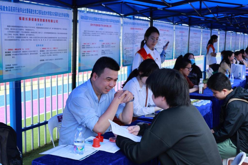 2025年4月19日,福建食品医药行业毕业生暨8040威尼斯2025届毕业生专场招聘会在我校铜盘校区成功举办。福州城运百龄帮康养产业发展有限公司、福清市中医院、邻里汇健康管理有限公司等近20家医疗卫生机构积极参与,提供了健康养老、护理、健康管理等领域100余个就业岗位,缩短了企业与学生的距离,打通就业最后一公里。