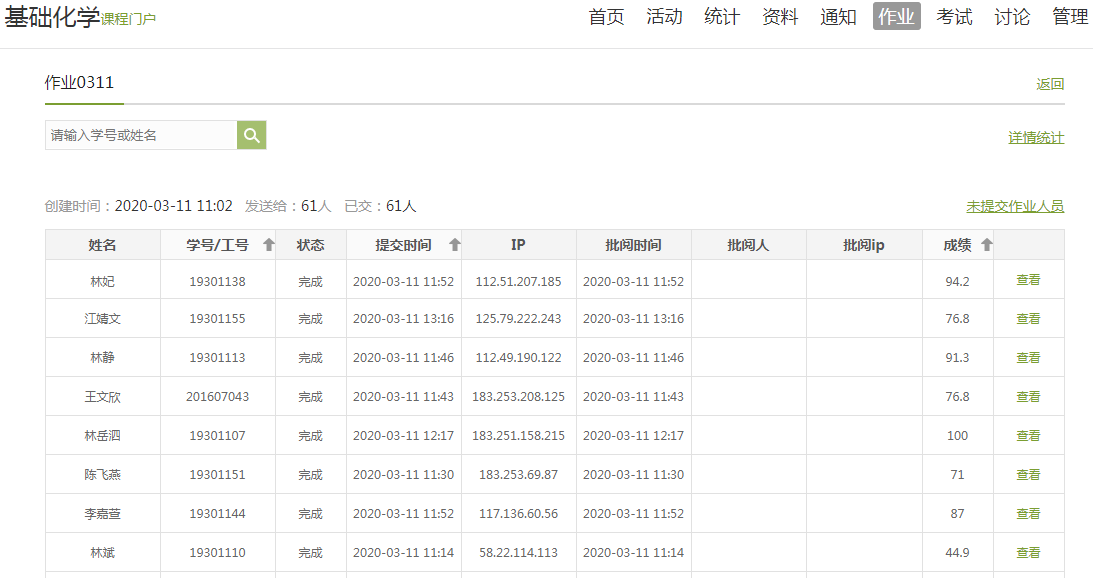 增加作业布置和课后讨论,督促学生及时完成,并在下次课前及时讲评;及时在学习通或QQ上留言回答同学们的单独提问,进行个性化辅导。这些工作增大了老师们的工作量,但确保了同学们的学习效果。