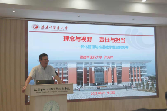 8月24日、25日,我校教师发展中心在洪山校区学术报告厅举办暑期教师教学能力提升培训班。此次培训邀请福建省职教中心主任龚森、福建中医药大学教师教学发展中心主任许克祥为主讲专家,参加培训的有我校各教学教辅部门负责人及教学管理人员、校级专业带头人、青年骨干教师、新进教师以及教务处全体人员,校领导吴昌标副院长也参加了培训班。