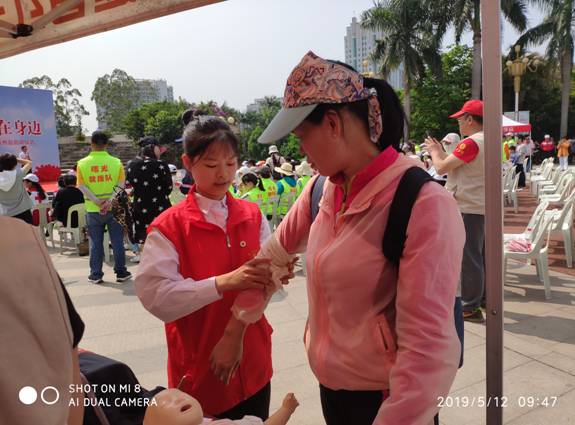 2019年5月12日上午,在福州温泉公园,机关第六党支部组织支部党员及我校红十字会19名红十字志愿服务队成员,参加由福建省红十字会和福州市红十字会联合主办,鼓楼区红十字会、省红十字救护培训中心、省红十字水上救援队承办的“红十字应急救护百万培训八闽行活动.福州站”启动仪式。活动现场,我校党员老师带领校红十字志愿服务队向周围群众传播健康理念,普及急救知识,展示成人、婴幼儿心肺复苏、急救绷带包扎、三角巾包扎等安全救护技术,提高群众对急救培训重要性的认识和参与积极性,有力促进我校现场救护培训工作。