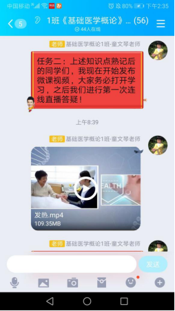 童文琴老师采用QQ进行教学 杨珺老师采用学习通+QQ进行直播