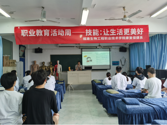 5月16日下午,为深入开展2023年职业教育周“技能让生活更美好”主题活动,我系邀请优秀校友——福州市仓山区巧臣健康咨询服务部负责人邹俊洁进校与学生分享筋膜刀技术,30名学生参加活动。