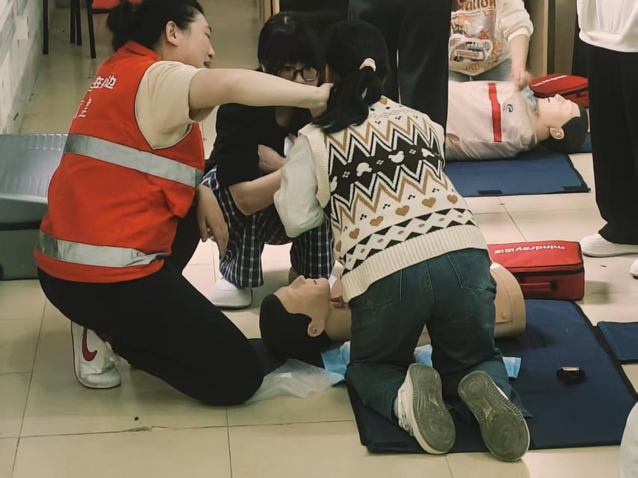 此次培训采用线上线下相结合、分组式、小班化教学模式。培训内容丰富实用,涵盖了理论授课、实操练习和现场考核三大环节。理论课程以常见急症、意外伤害为主,讲授了海姆立克急救法、心肺复苏术(CPR)及自动体外除颤器(AED)使用等,专业授课教师把理论与真实案例相结合深入浅出地剖析,让复杂的医学知识变得通俗易懂。