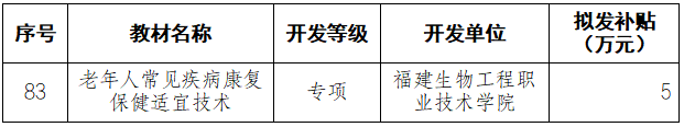 近日,据福建省技工教育中心文件,我系潘泳鸿教师团队编写的《老年人常见疾病康复保健适宜技术》,历经项目申报、多轮审校及专家评审,成功入选福建省“职业技能提升工程”为民办实事项目职业技能实训教材,获得5万元资助,并将在全省推广使用。