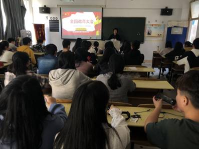 在 11月27日下午15:30,为了让同学们更好地学习“习近平总书记在全国教育大会上的讲话”精神,关淑玲副院长在我院铜盘校区教学楼301教室进行宣讲。