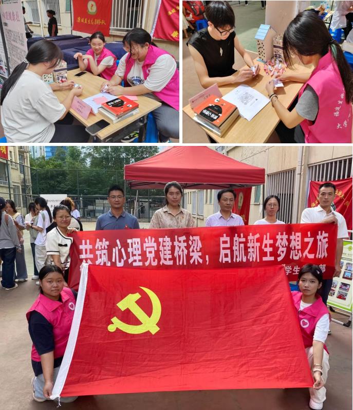活动现场,心理健康社志愿者们引导新生在签到墙上写下自己姓名及对大学的期望,支部党员老师也为前来报到的新生进行开展心理健康科普,内容涵盖了如何识别和应对常见的心理问题、如何建立健康的人际关系以及如何有效管理学习和生活压力等;与新生进行了心理小游戏,旨在通过游戏互动帮助新生纾解压力、调整心理状态;同时还跟新生们介绍了我系心理健康一站式学生社区服务站的具体情况与服务内容。