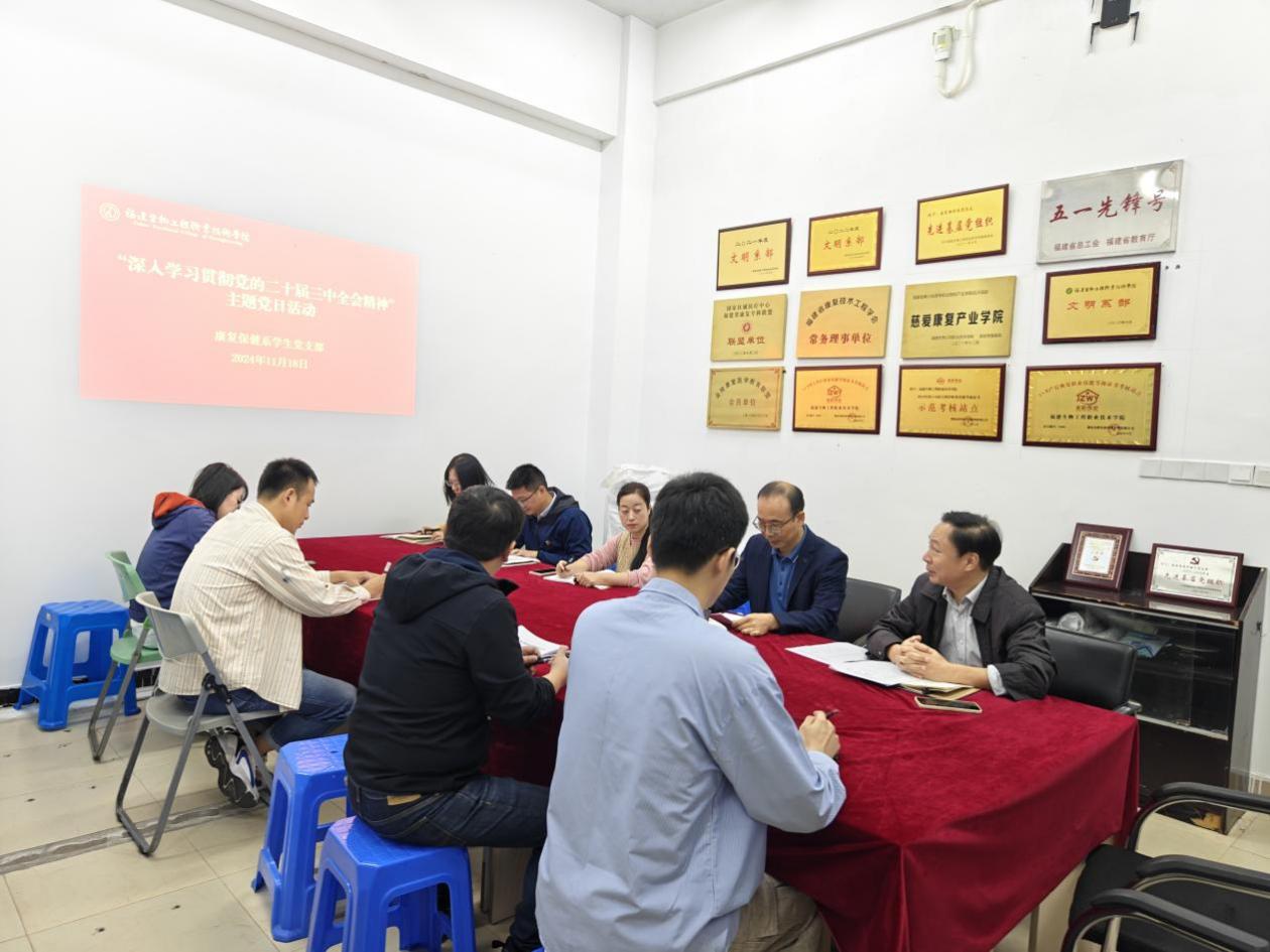 为深入学习贯彻党的二十届三中全会精神,康复保健系学生党支部于11月18日在宏天教学点103办公室开展“深入学习贯彻党的二十届三中全会精神”主题党日活动。