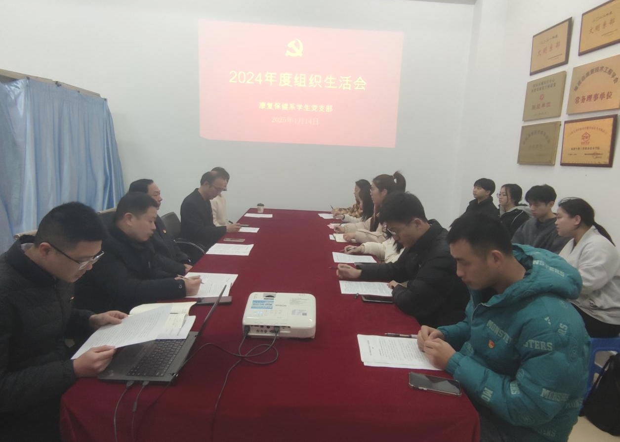 为深入学习贯彻习近平新时代中国特色社会主义思想,巩固深化党纪学习教育成果,加强支部建设,强化党员沟通交流,2025年1月14日下午,康复保健系学生党支部在铜盘校区宏天教学点103A办公室召开2024年度组织生活会暨民主评议党员大会。系党总支组织委员郭生挺作为督导到会指导。