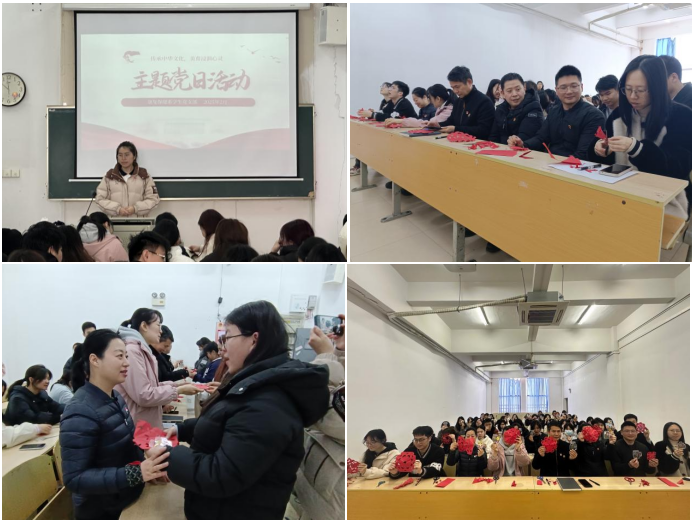 为进一步弘扬中华优秀传统文化,增强文化自信,营造温馨和谐的校园氛围,为新学期学生心理赋能,康复保健系学生党支部联合大学生心理健康社于2月25日在宏天教学点301B教室开展“传承中华文化,美育浸润心灵”主题党日活动。