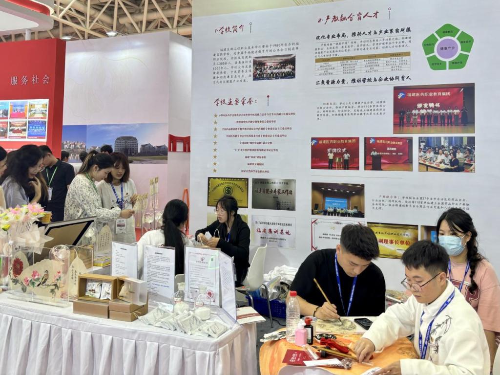 学校展区以我校在人才培养、产教融合、科学研究、社会服务以及文化传承创新等方面的成果和特色为主题,展示了我校的专利成果、中医药产品、社团非遗产品、治疗技术等。展区受到了各兄弟院校、企业和现场观众的密切关注、参观交流和现场体验。其中,我校本草社师生们现场在“叶脉”上作画,展示非遗叶脉画、叶脉灯、叶脉装饰画、叶脉书签等作品,其精美的工艺和独特的创意吸引了大量参观者的目光。这些书签以自然叶脉为蓝本,经师生的巧手加工,变得既富有艺术感又富有实用性,充分展示了我校学生社团的创造力和实践能力。
