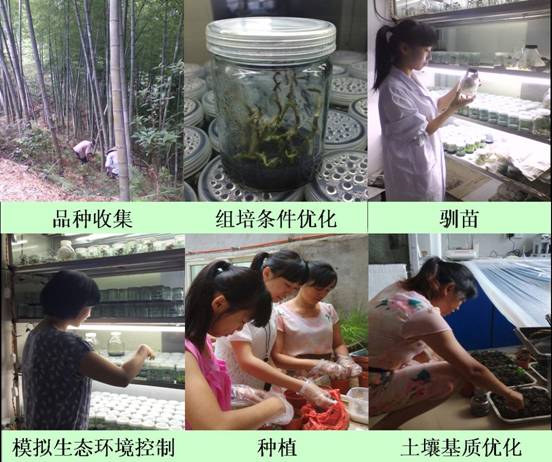 在我系吴丽民、郑若男、李志平老师的带领下,生物技术团队植物组培项目的各项工作正有条不紊地开展。团队成员深入柘荣、武平、上杭等地区,一共收集7个品种的金线莲和4个品种的铁皮石斛,并对各品种瓶苗进行扩培及组培条件的优化,包括各培养阶段培养基配比、植物激素的用量调节等,利用现有实验室条件进行瓶苗的驯化,模拟光照、温度、湿度、水肥等生态环境控制,优化土壤基质,并于10月9日在我院百草园种植了第一批金线莲。