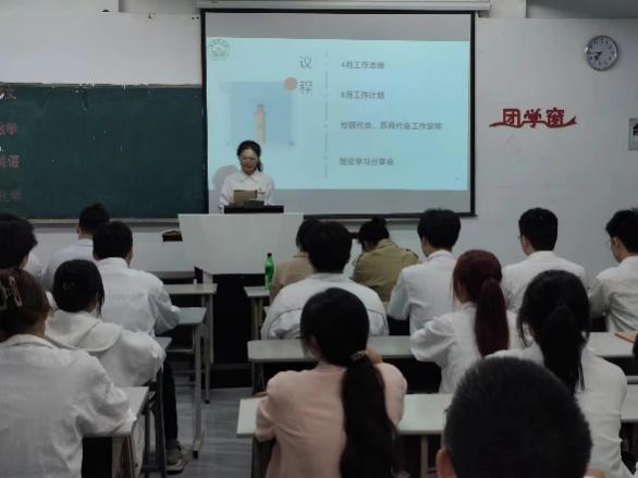 4月26日,健康食品系分团委在10号楼108教室召开2023年春季学期第二次工作例会,全系学生干部参加了会议,会议由分团委书记林靖主持。