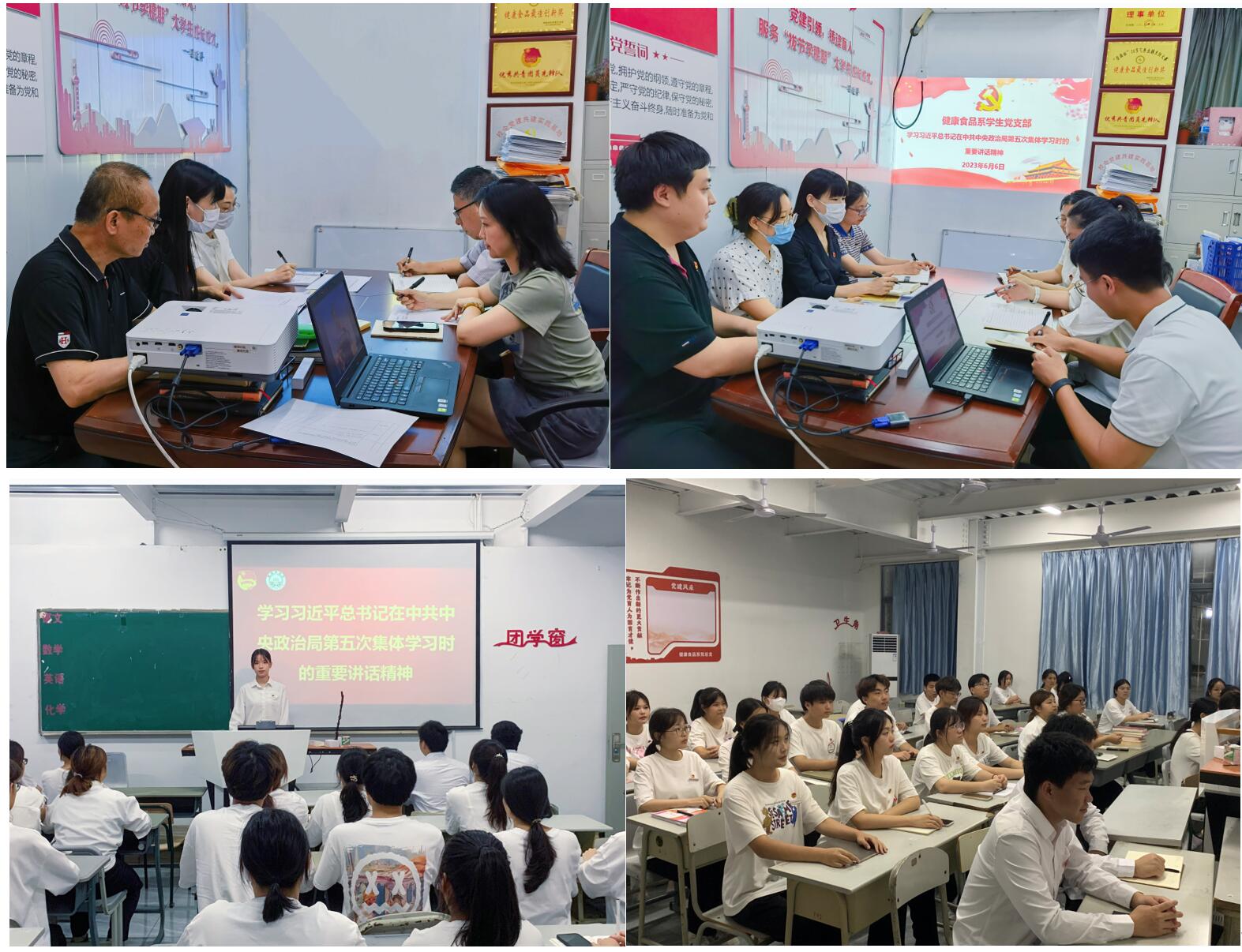 近日,健康食品系通过多种形式组织全系师生认真学习习近平总书记在中共中央政治局第五次集体学习时的重要讲话精神。系党总支副书记张舒敏在总支委员会全体会议上领学讲话精神;教工、学生党支部分别结合主题教育集中学习活动的开展,组织支部党员开展专题学习研讨;系分团委组织青年团员开展学习理论分享会,组织各班级开展大学生双周政治理论学习会进行专题学习。