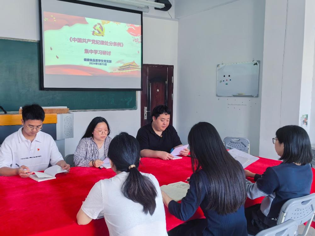 5月21日下午,健康食品系学生党支部组织全体党员召开第二次党纪学习教育集中学习研讨会,认真贯彻落实党中央关于党纪学习教育的部署安排,深入学习贯彻习近平总书记关于党的纪律建设的重要论述。活动由党支部书记陈佳惠主持。