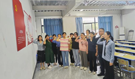 一曲《我爱你中国》在教室里回荡,歌声中饱含着对祖国的无限热爱和深深祝福。全体党员教师用歌声表达对祖国母亲的深情,用旋律传递对党、对国家的忠诚与热爱,现场气氛热烈,情感真挚。
