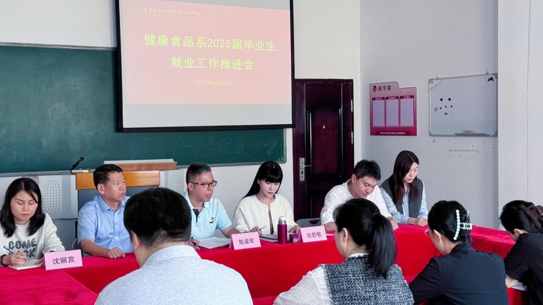4月23日,健康食品系召开2025届毕业生就业推进会,部署"红色领航促就业"专项行动。会议由系主任陈梁军主持,系党总支全体委员、科技处负责人、机关第九党支部书记及教学教辅第三党支部代表参会。