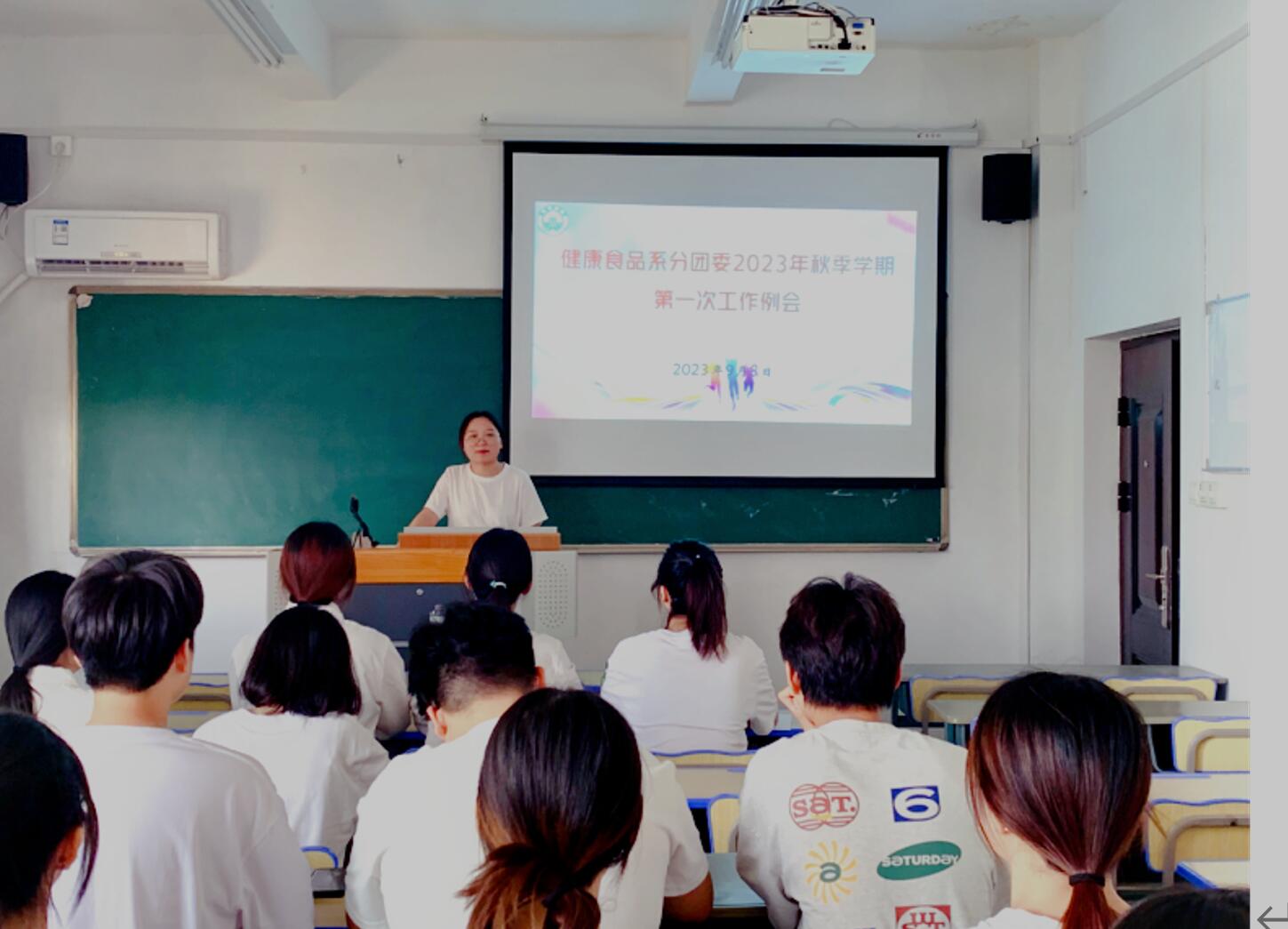 9月8号,健康食品系分团委在3号楼501教室召开2023年秋季学期第一次工作例会,全系学生干部参加会议,会议由分团委书记陈佳惠主持。