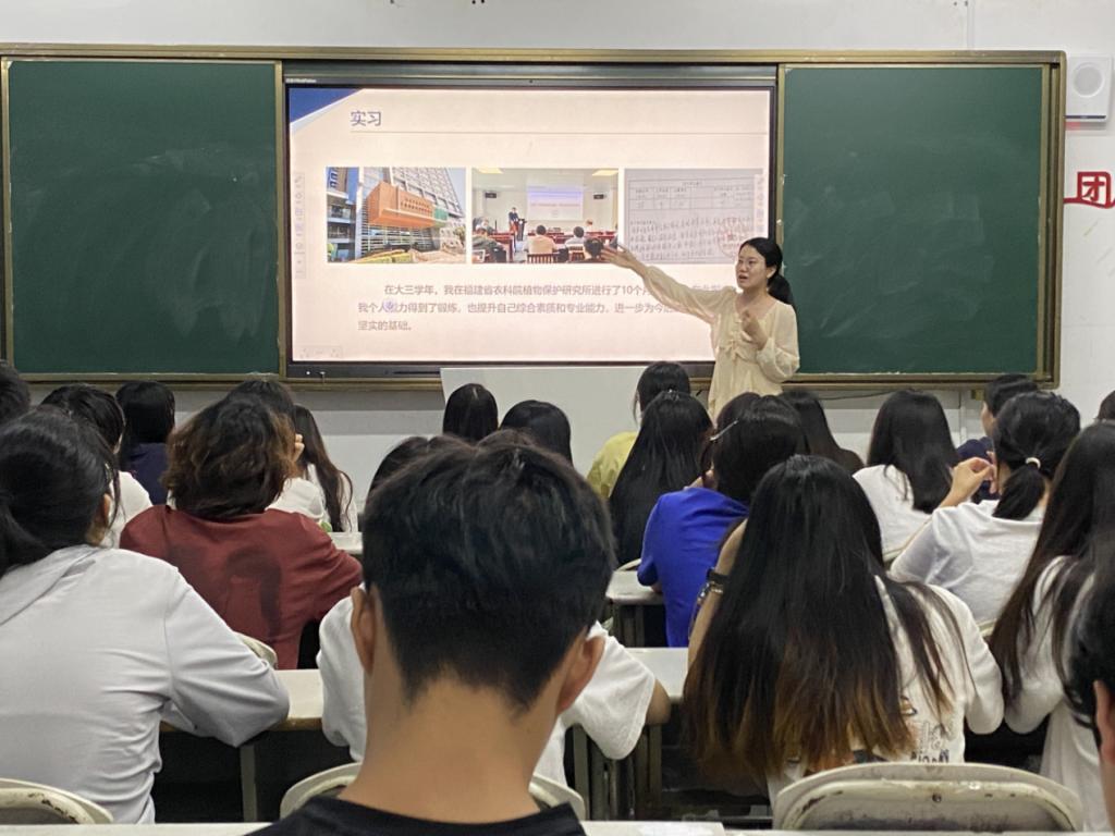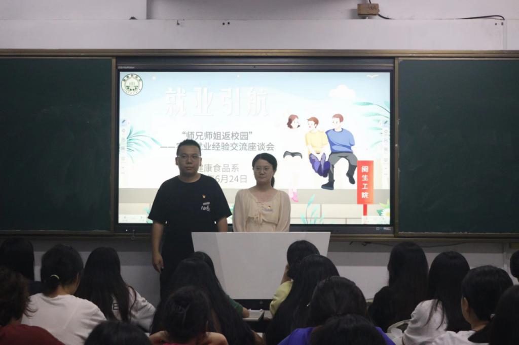 6月24日下午,健康食品系在10#108教室举办“师兄师姐返校园”实习就业经验交流座谈会。邀请了2021级黄钦杰、闫乐涵同学主讲,2022级学生代表参加。