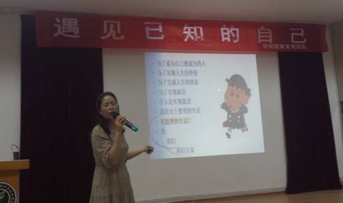 为进一步明确职业目标和规划步骤,通过唤醒认知,提高学生职业生涯规划意识。我系党总支副书记、国家二级心理咨询师林丰平老师于6月9日晚在多功能会议厅开展了“遇见已知的自己”讲座。