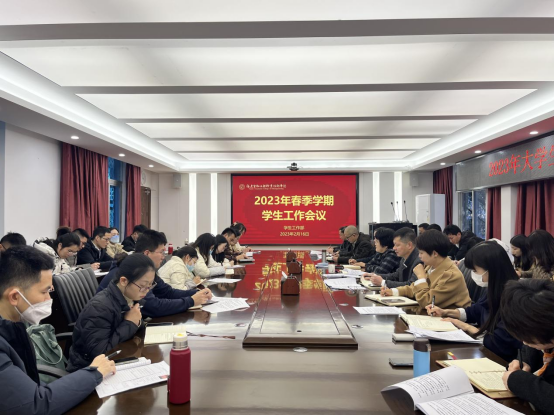 2月16日下午,我校在洪山校区第二会议室召开2023年春季学期学生工作会议。学院党委委员、副院长关淑玲出席会议并讲话,宣传部、安全与后勤管理处负责人、学生工作部和校团委全体干部、各系党总支书记、副书记及全体辅导员参加会议。